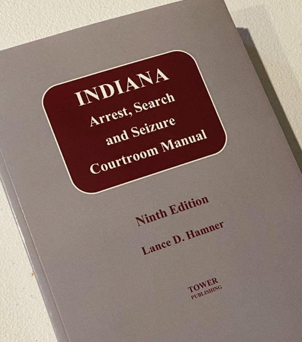 Indiana Arrest, Search & Seizure Courtroom Manual (Tower Publishing, Lexis Law Publishing, 2001, 2002, 2004, 2010, 2014, 2017, 2020). This manual contains more than 550 pages and 5300 appellate case citations! CD may be added for additional $2.00